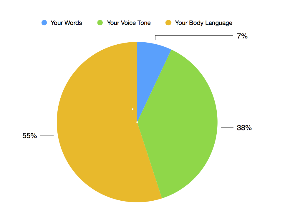 The Albert Mehrabian model is often used to demonstrate this when looking at communication within organisations and relationships. According to the renowned Psychologist, the above three elements account for our perception of another person. The percentages may not be exact, however for most people they will be very close to the mark.